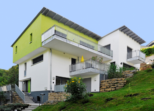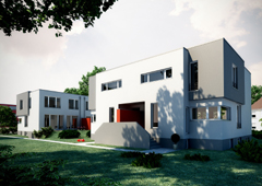 von einem Mehrfamilienhaus und zwei Doppelhäusern, Frankfurt am Main |